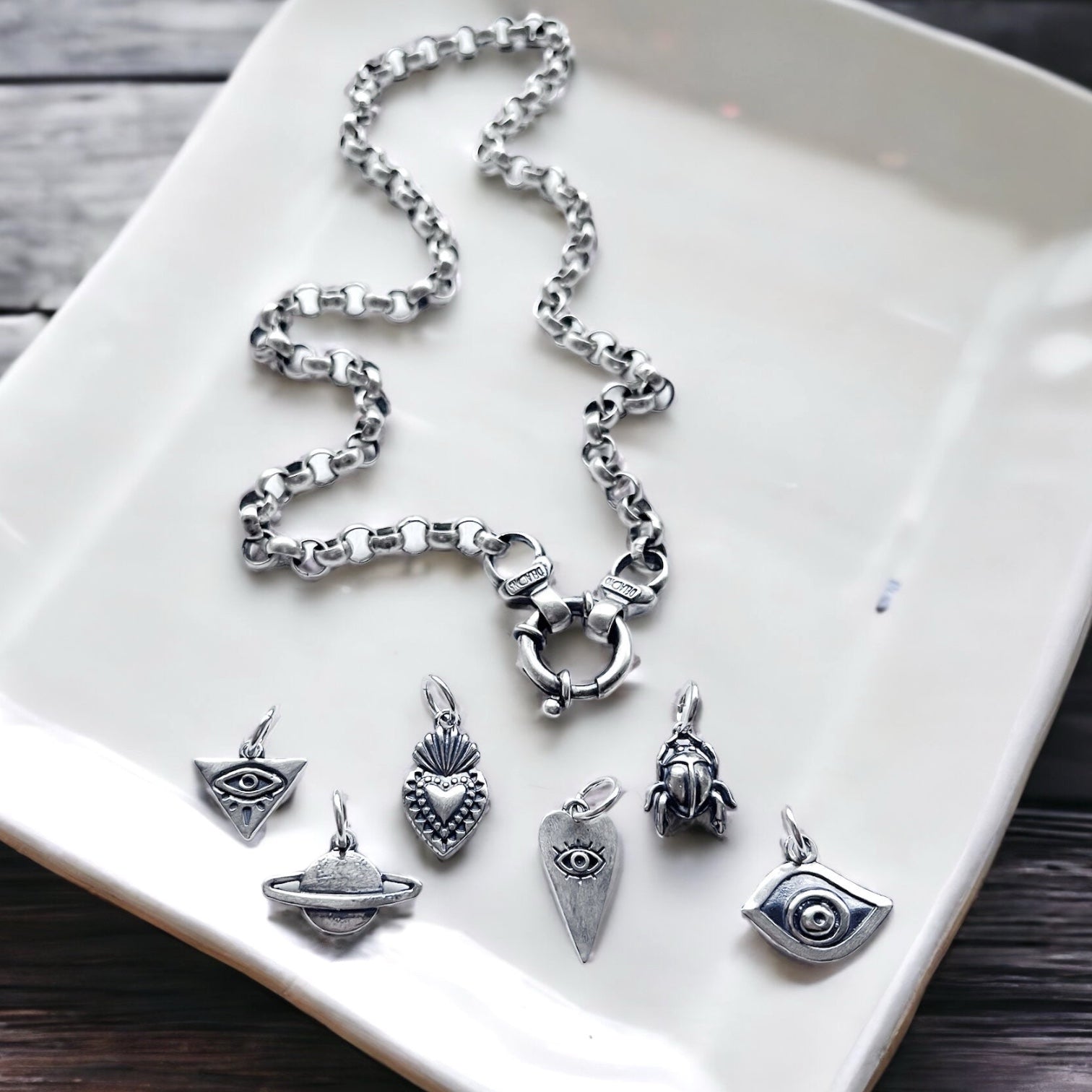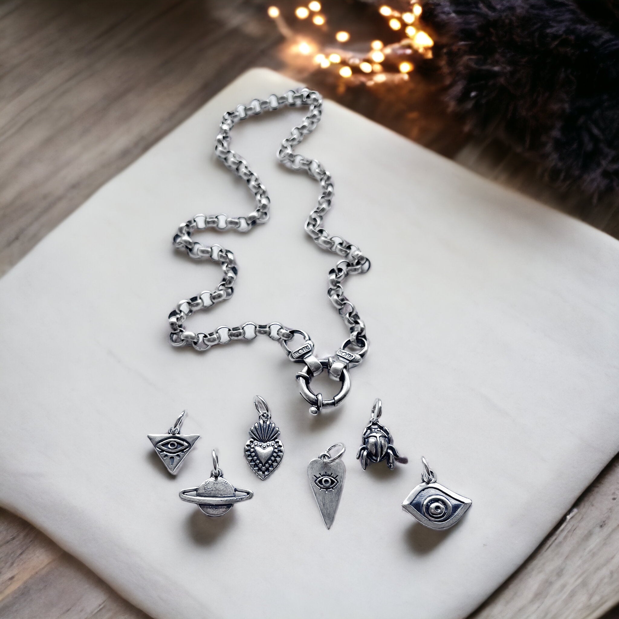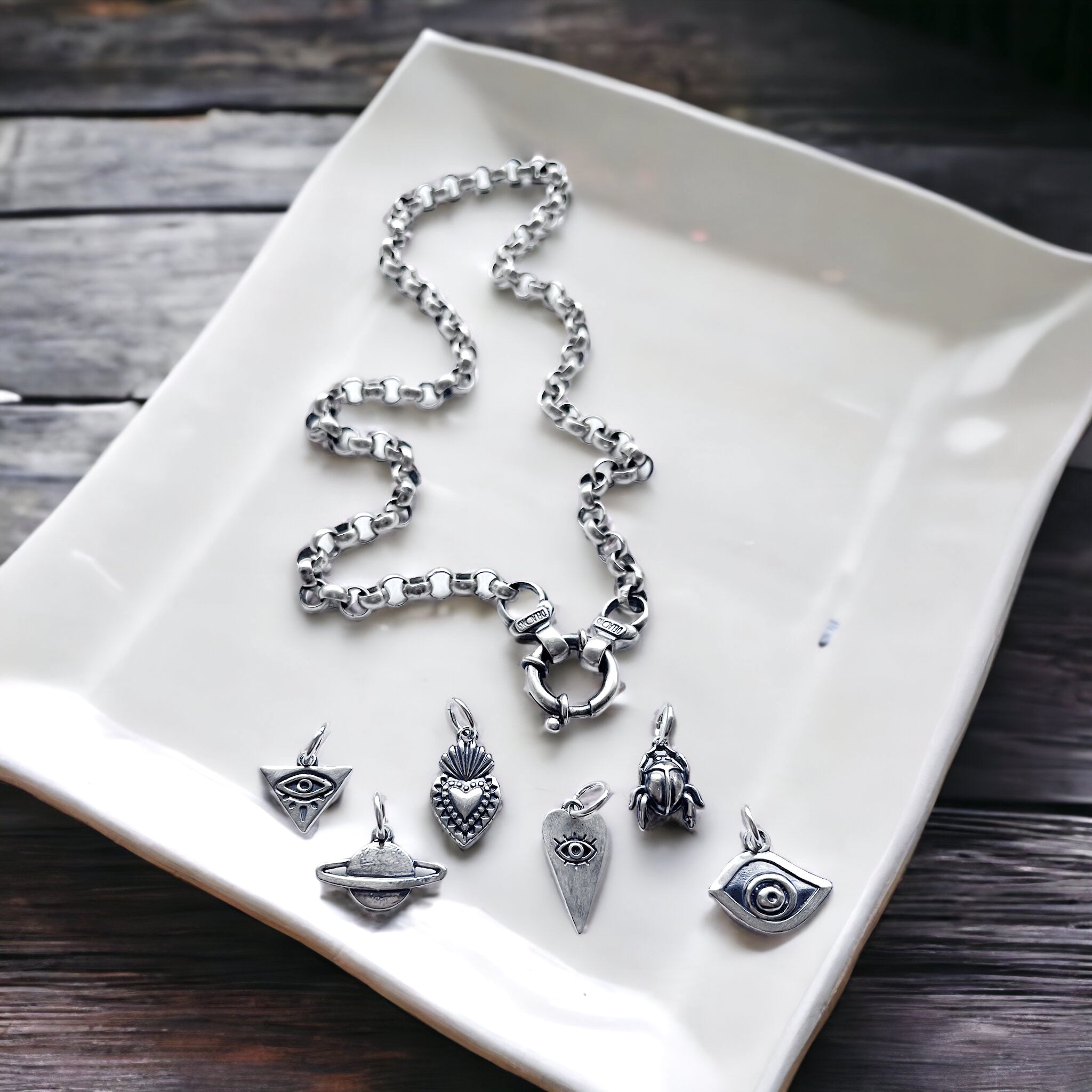 Cadena Rollon Mediana de plata 925, traídas de Italia. El proceso de envejecido lo hacemos nosotras. El Broche timón es talla L y es de plata 925.